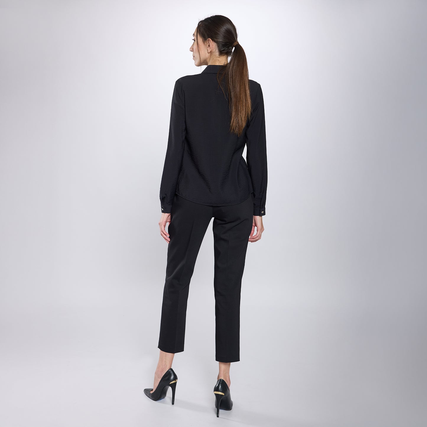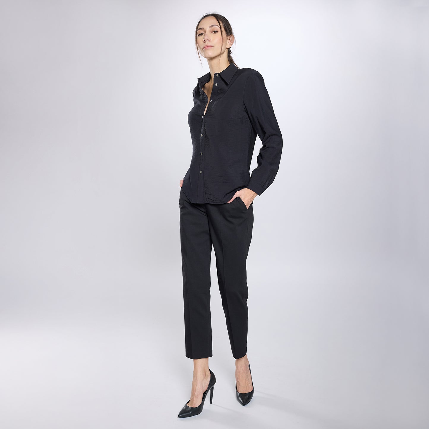 Camisa abotonada, manga cierre de siete botones plateados