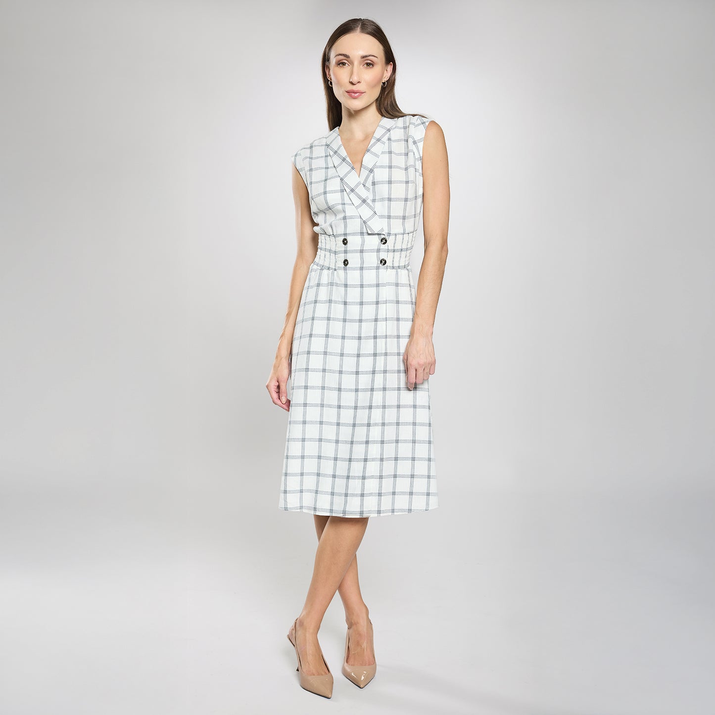 Vestido largo con estampado tipo windowpane