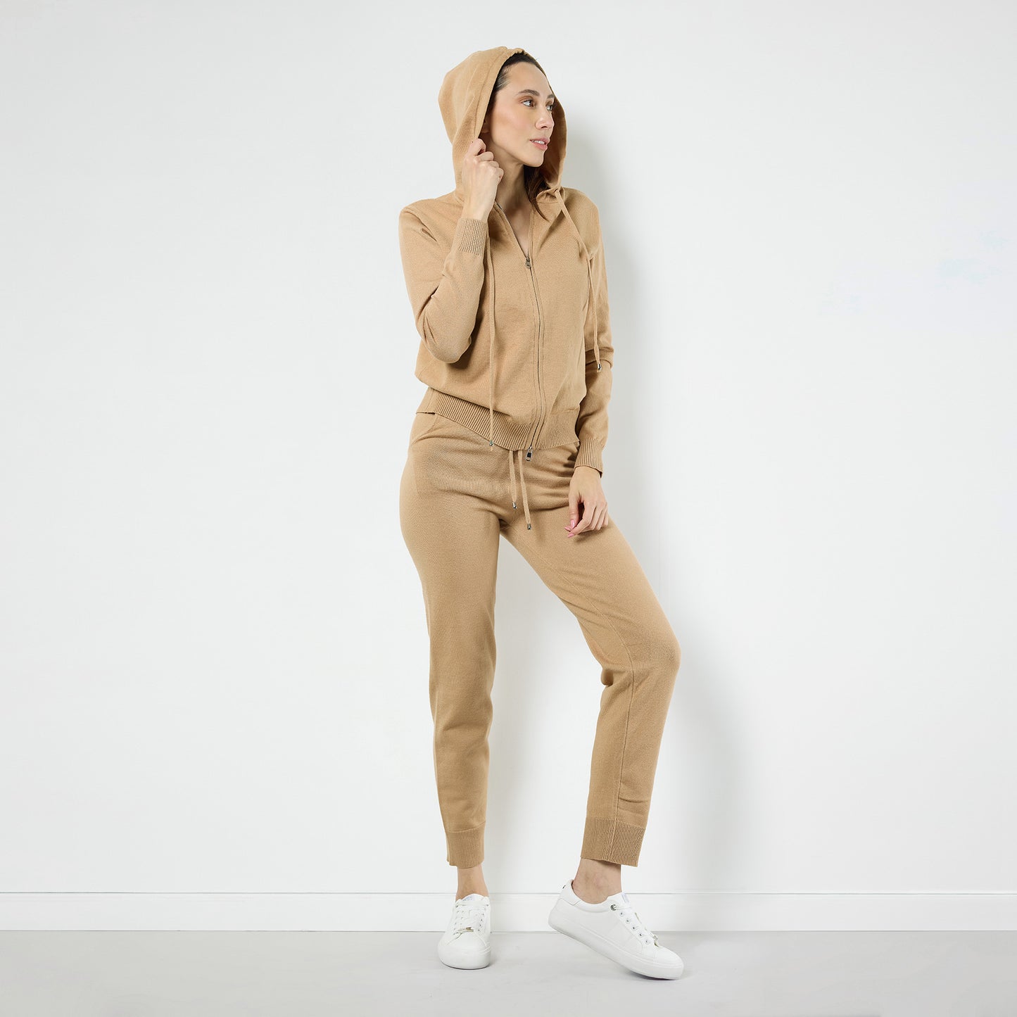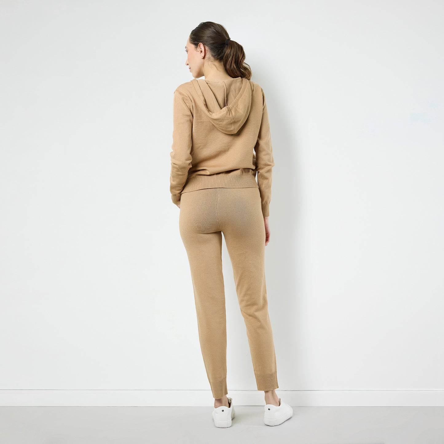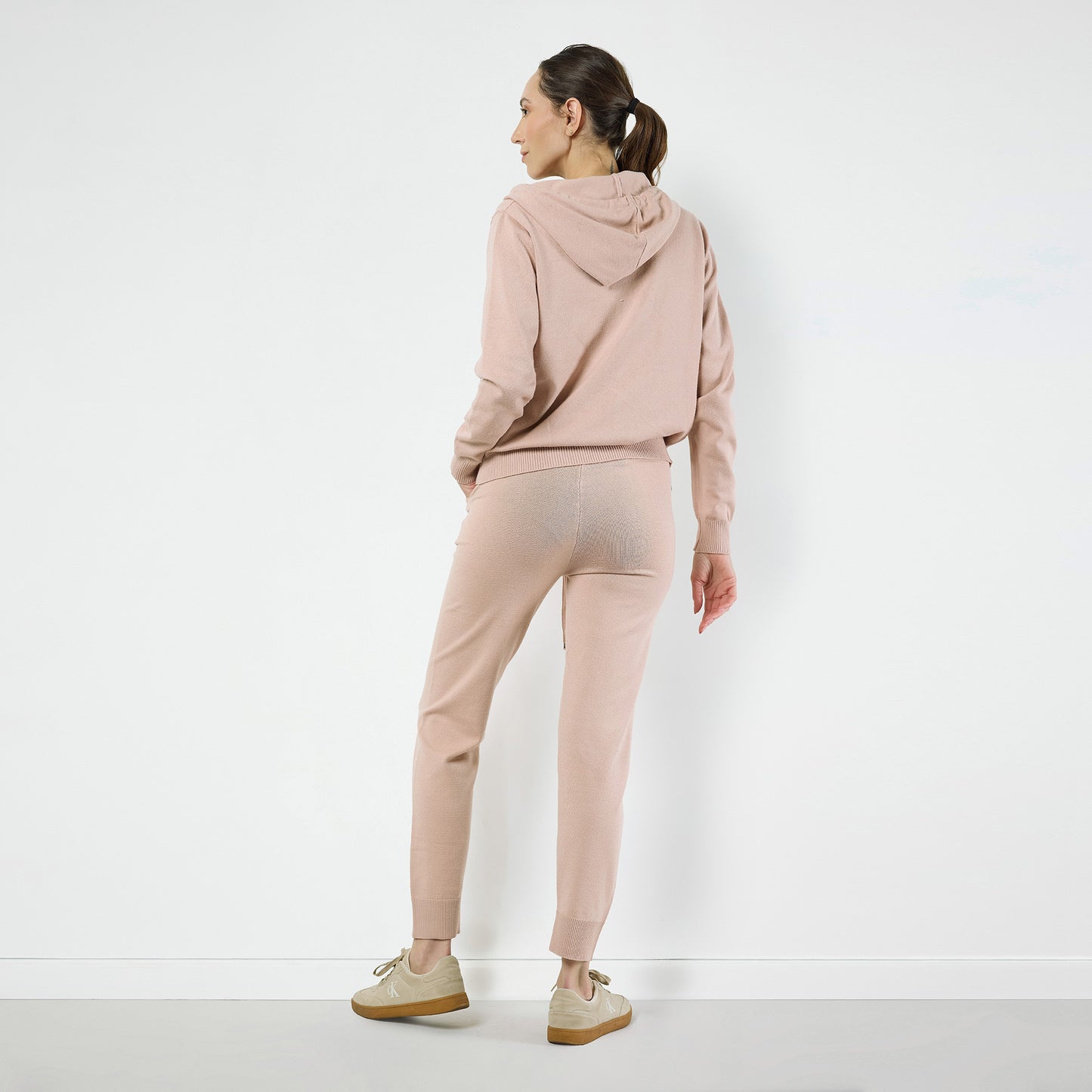 Pantalón estilo jogger de tiro alto, cintura en elástico ajustable por jareta. Corte de pierna ceñido al cuerpo. Tobillo terminado en rib.