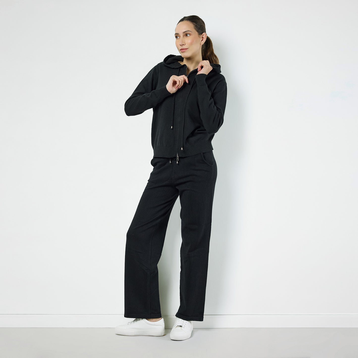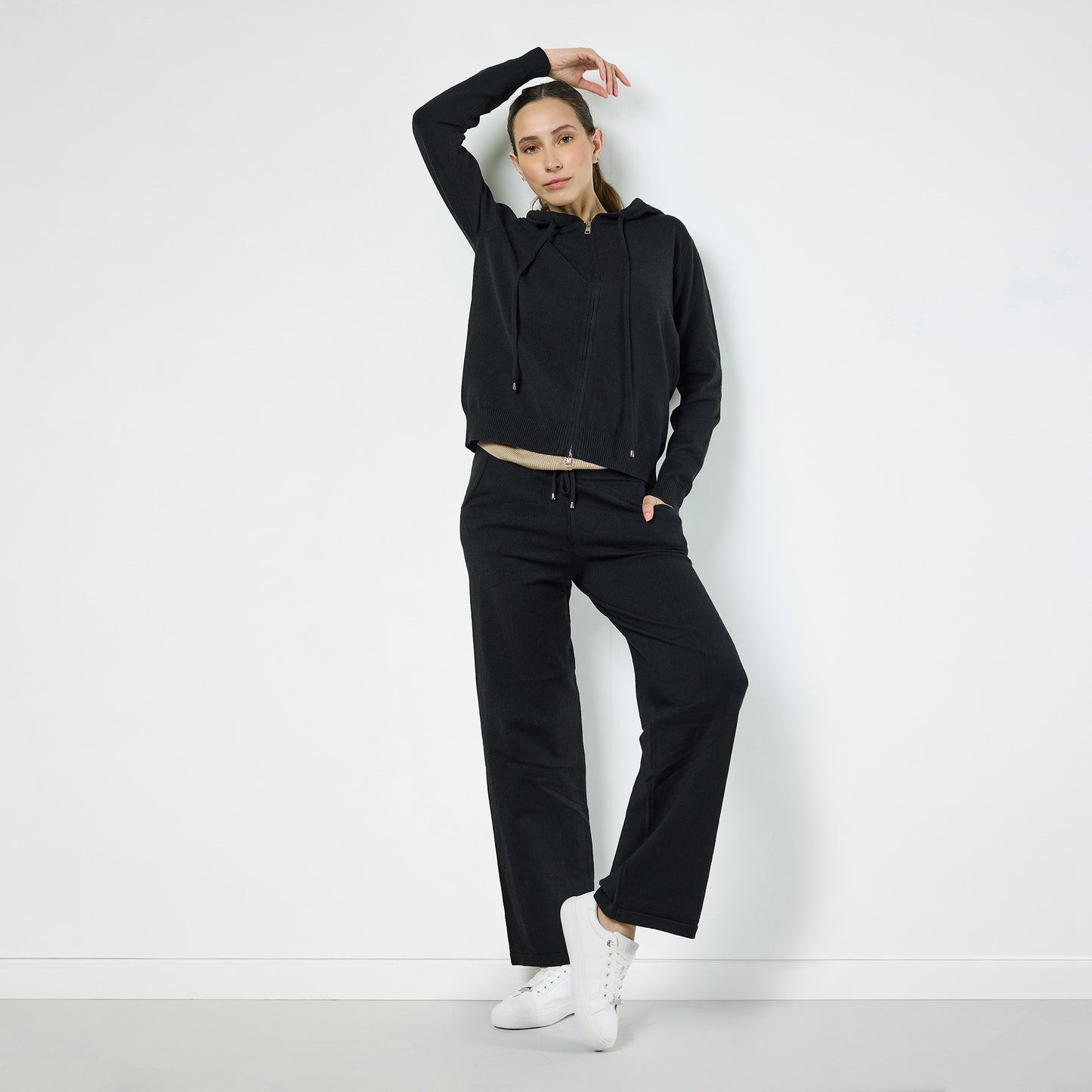 Sudadera con cierre ceñida al cuerpo con gorro y jareta.