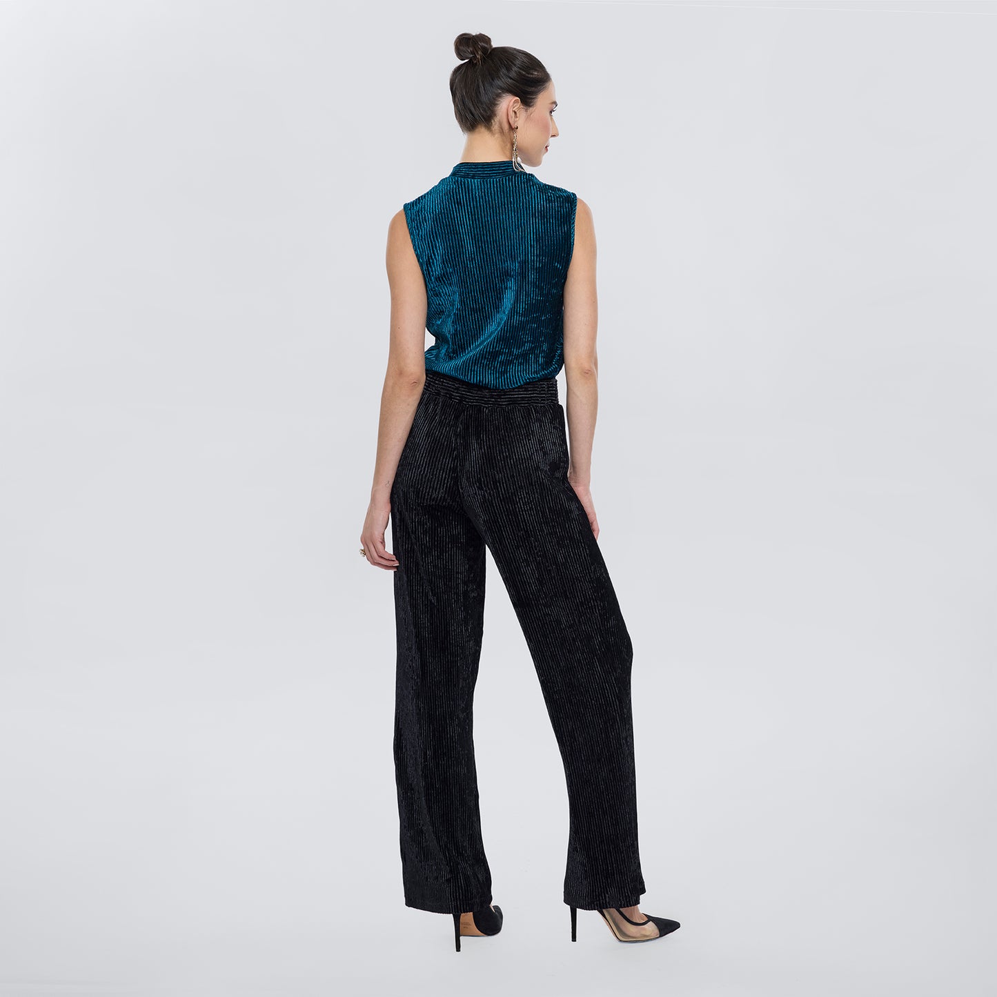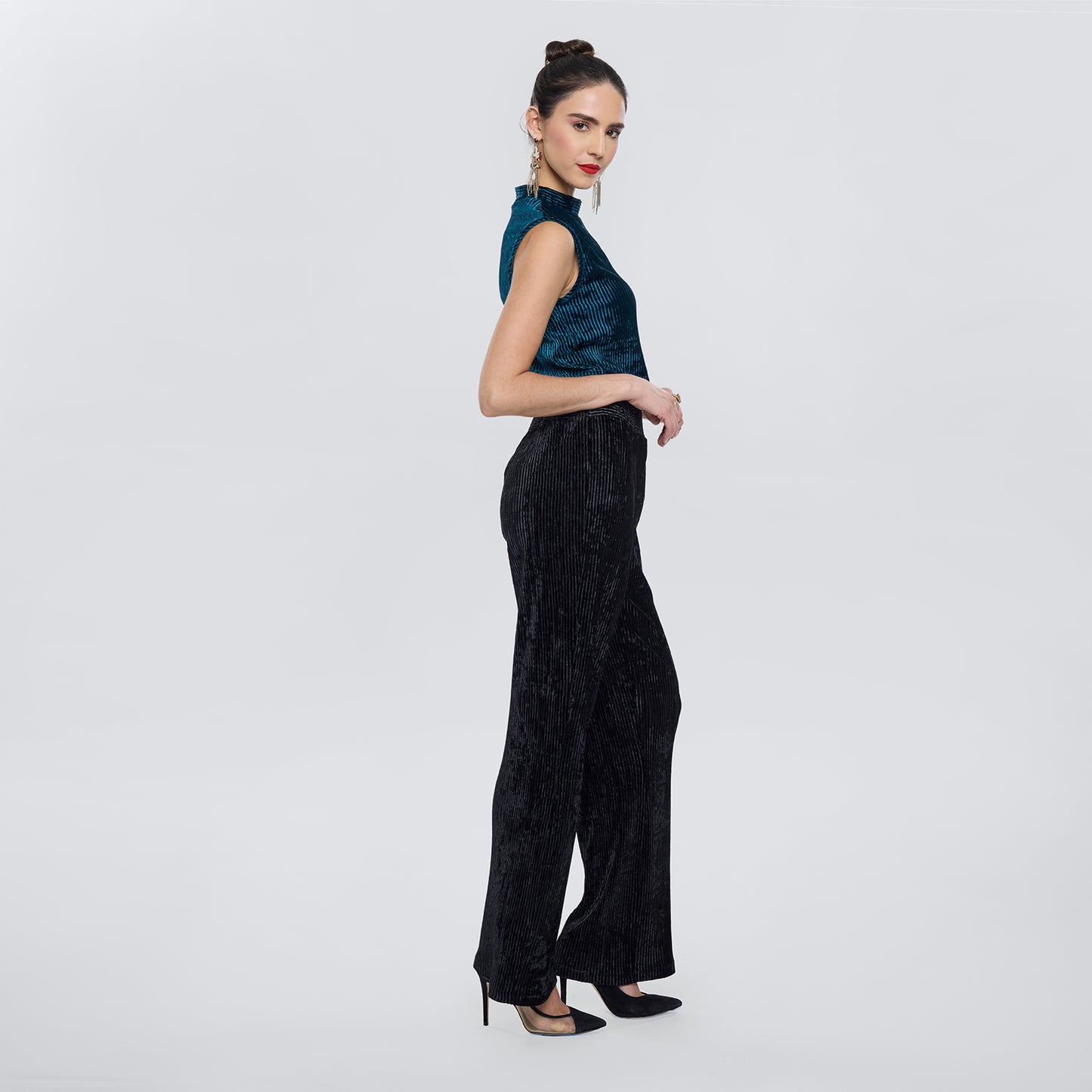 Pantalón velvet con resorte de cintura media (petróleo/vino/negro).
