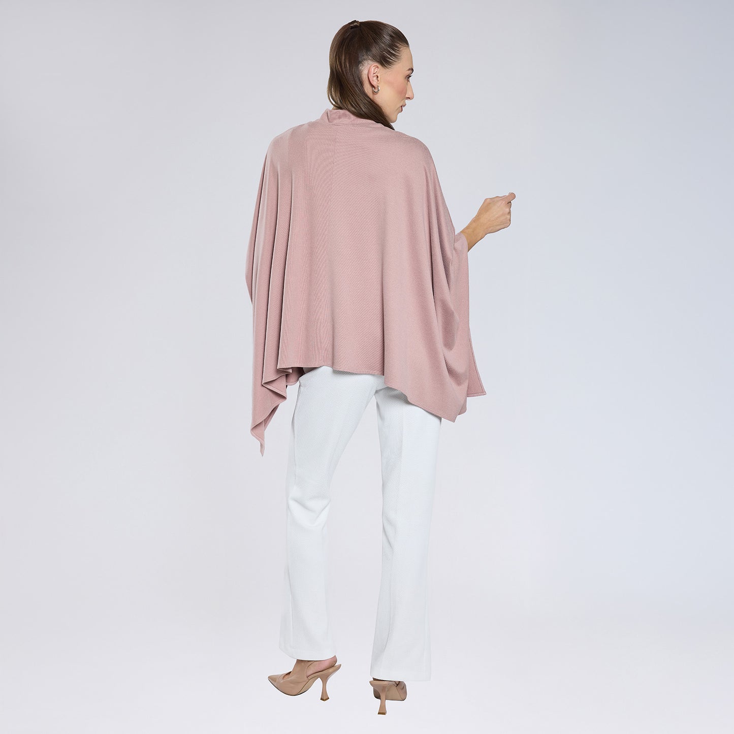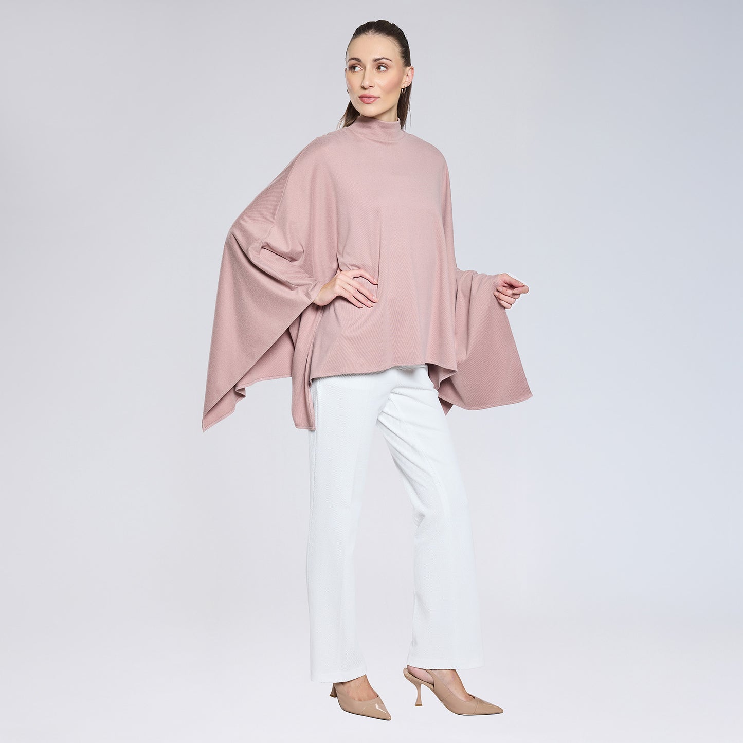 Capa con corte holgado de tejido de punto, sin mangas, con cuello tipo turtleneck.