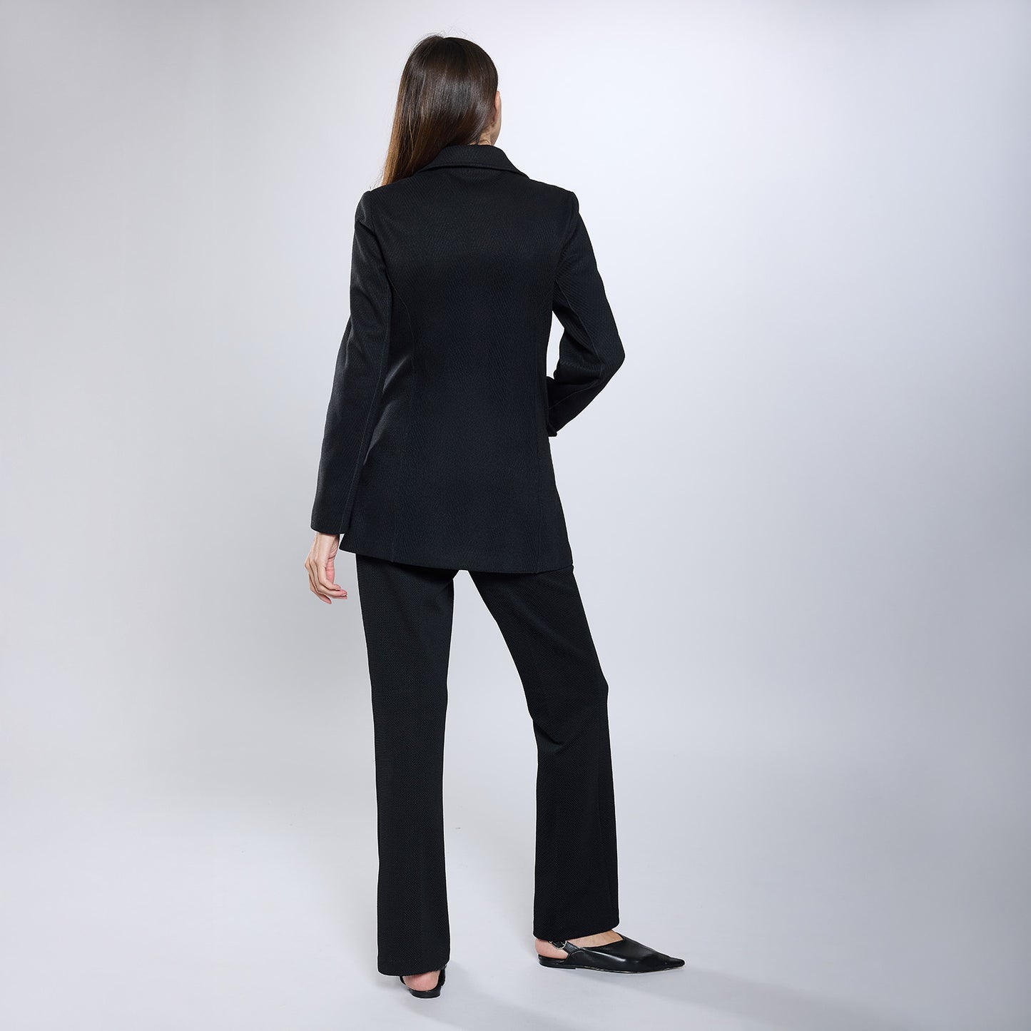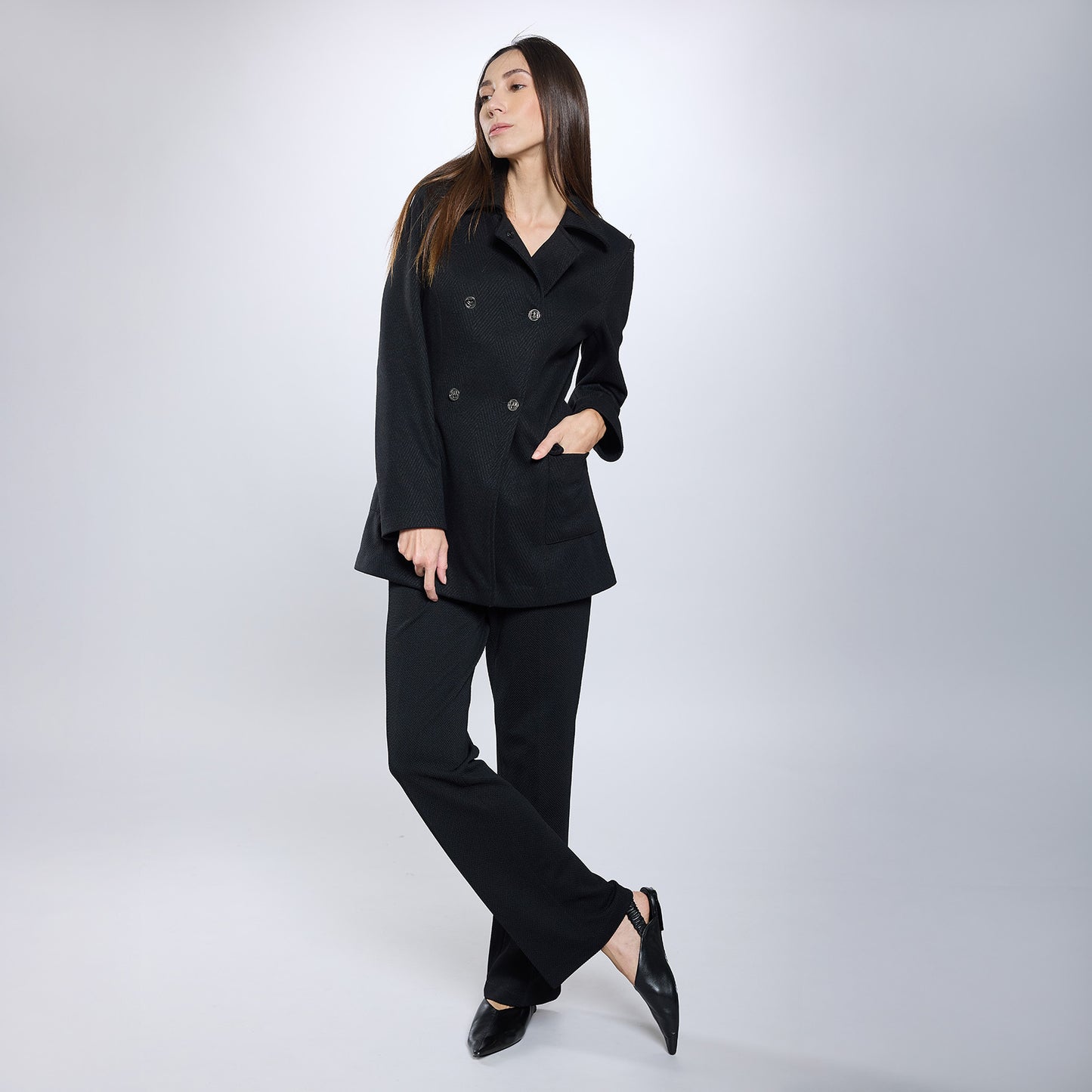 Abrigo estilo soldier de cuello de solapa, cierre frontal de doble botón. Manga larga, bolsillos con cartera frontal.