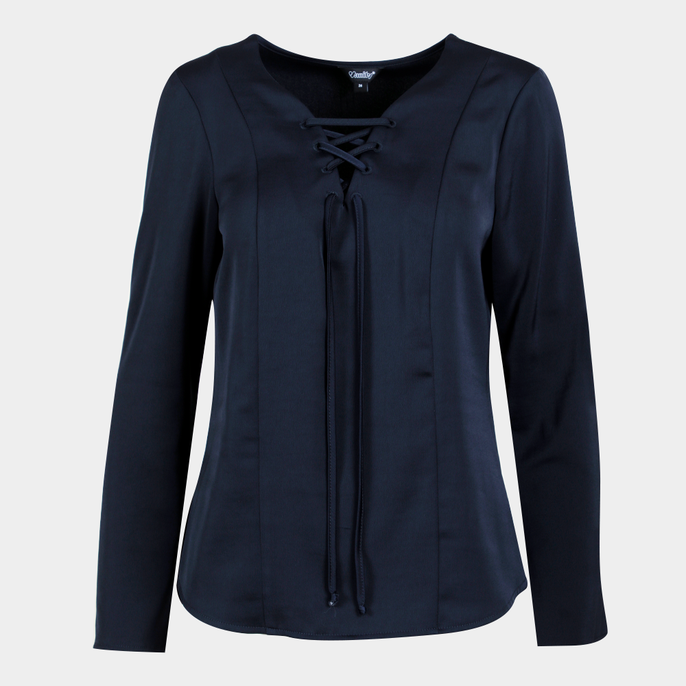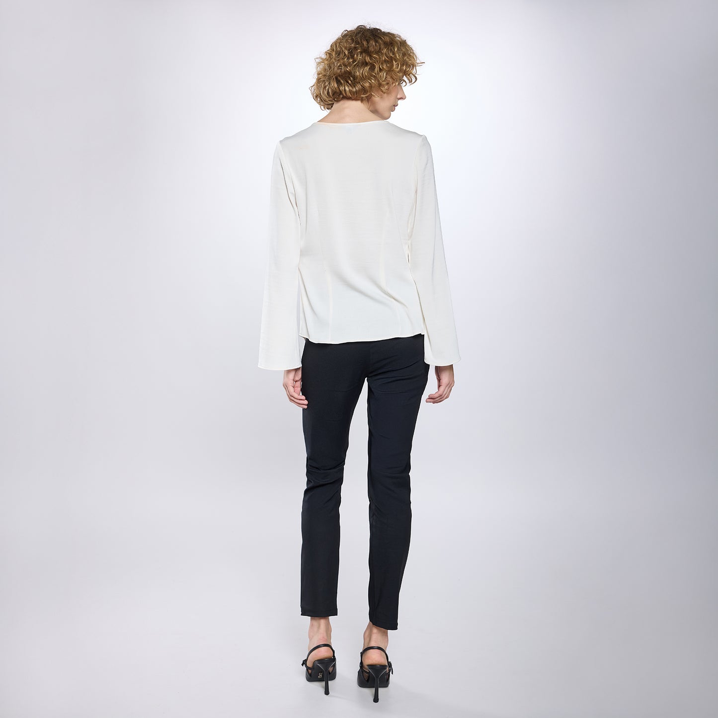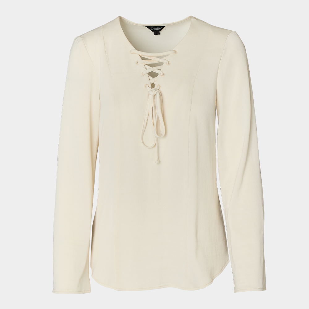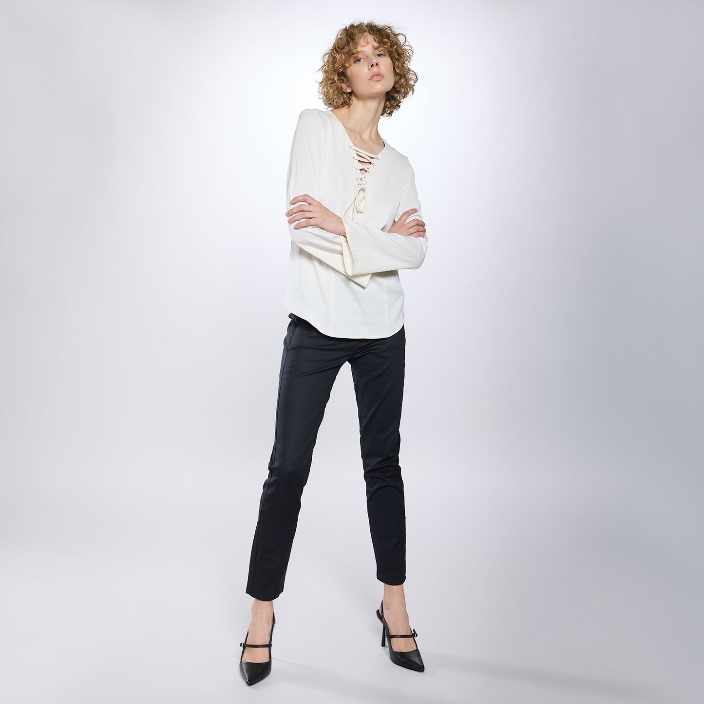 Blusa ligera con escote tipo lace up y manga larga estilo funnel.