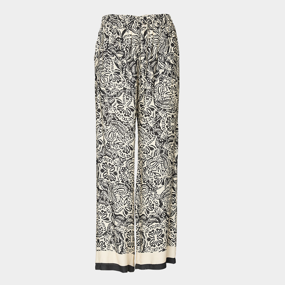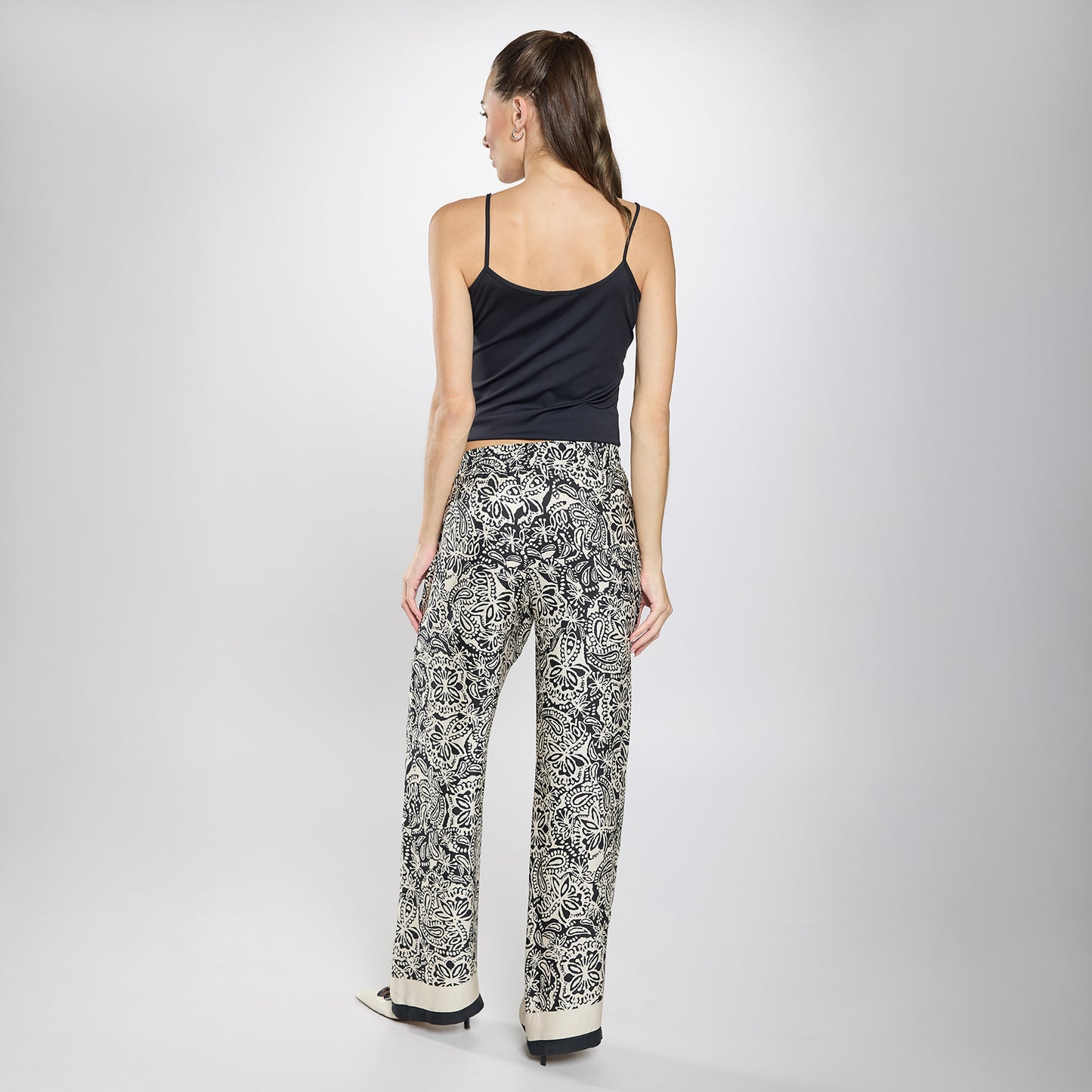 Pantalón informal, corte recto con resorte en pretina doble y cinta de ajuste, bolsillos laterales amplios, confeccionado en una tela ligera.