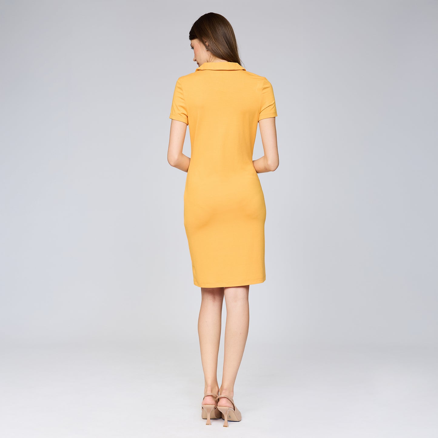 Vestido de cuello tipo polo y escote en V. Manga corta. Corte recto. Silueta fluida al cuerpo.